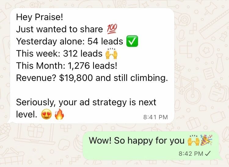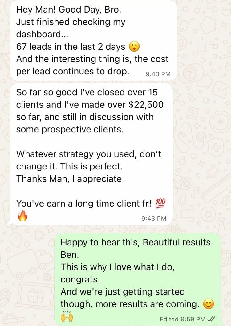Yes. If you follow the system exactly and don’t see any improvement or consistent lead flow within 30 days, I’ll continue running your ads at no extra cost until you hit results. You’re fully supported