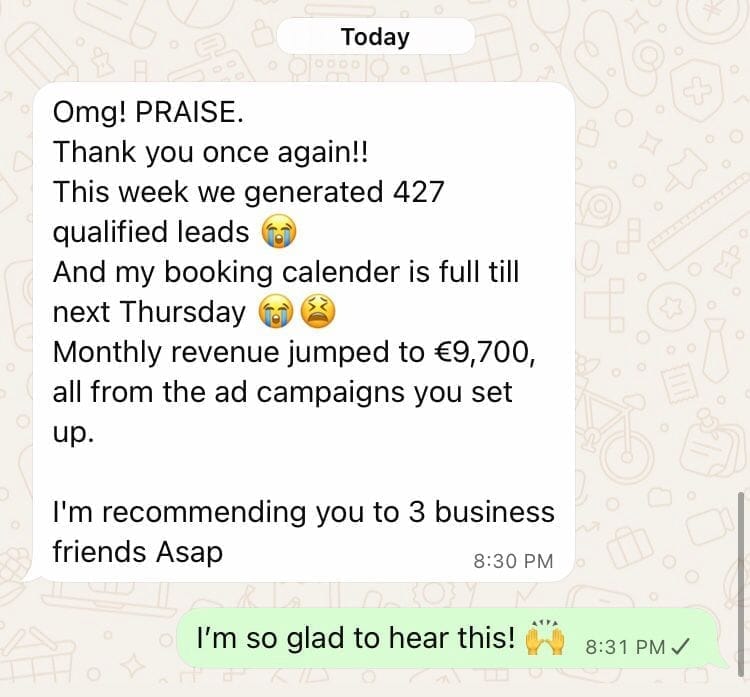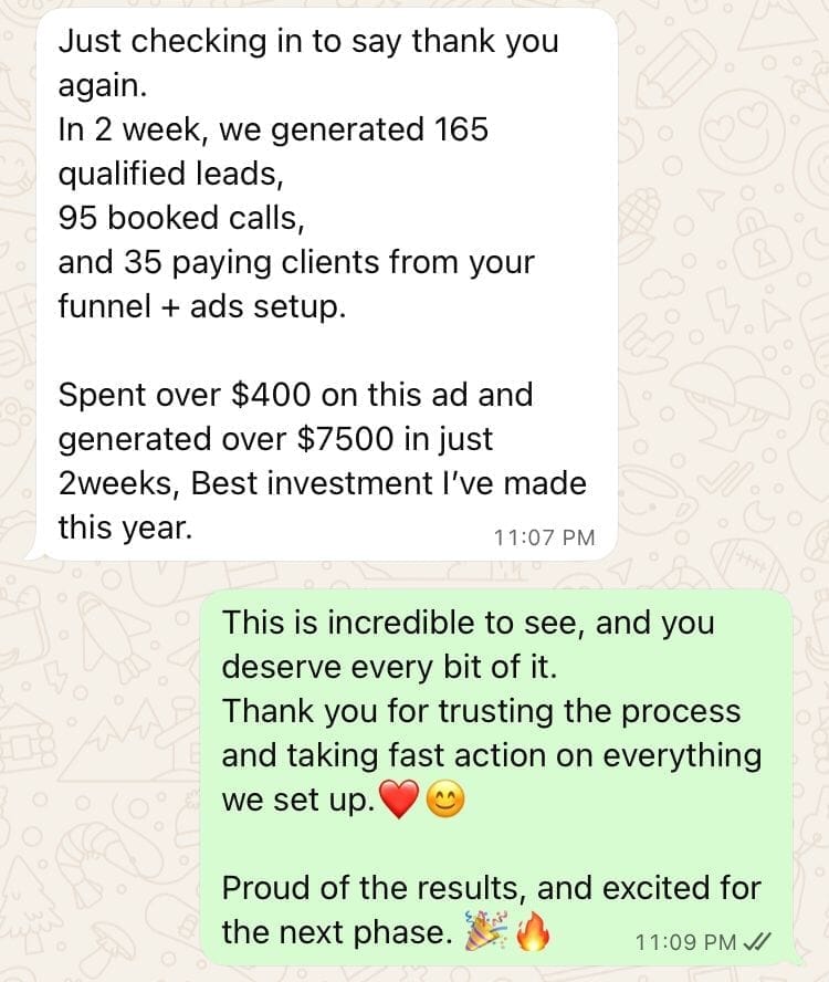 Yes, when done right. The system is built for small budgets and optimised for high-converting audiences. Many clients start with $10/day, get consistent leads, then scale up once revenue comes in.
