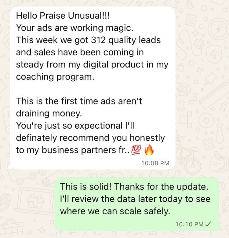 No problem. I’ll help refine it so it attracts the right buyers. Even small tweaks (messaging, value, positioning) can be the difference between struggling ads and profitable campaigns.