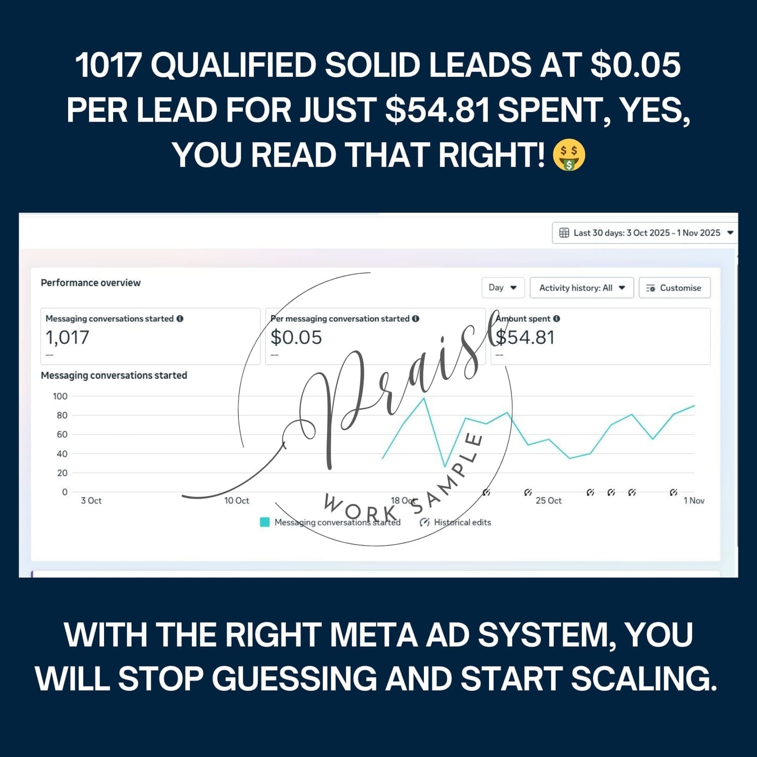 1,017 leads at $0.05 each. $54.81 spent. Yes, it's real.
